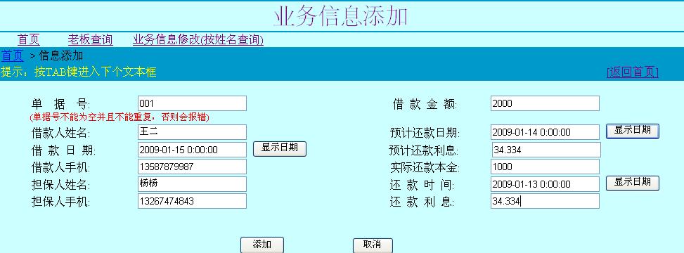 图二:业务信息添加(可以把日常所发生的业务添加进去)