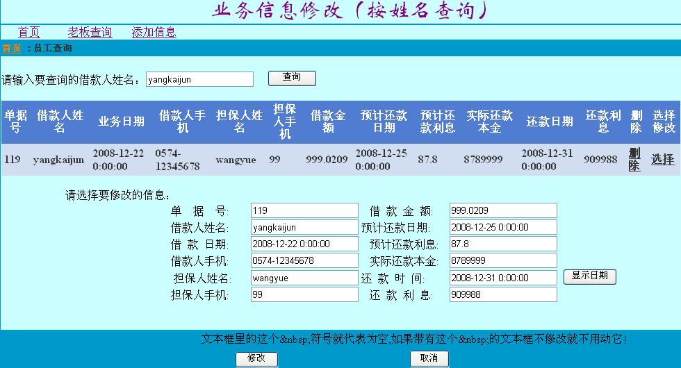图四:业务信息查询(根据姓名查询到这个人的所有资料)