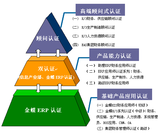 随着信息化的不断深入,应用ERP提升竞争力已经成为企业发展的必由之路,金蝶认证体系是由金蝶软件(中国)有限公司创建并全球推行,它为企业培养出一批既精通ERP核心理念、软件功能和业务应用模式,又熟悉企业管理整个过程的复合型人才。主要包括: